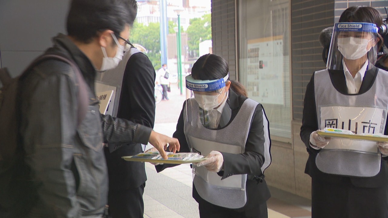 JR岡山駅では、岡山市の職員など7人がチラシの入ったティッシュ500個を配りました。